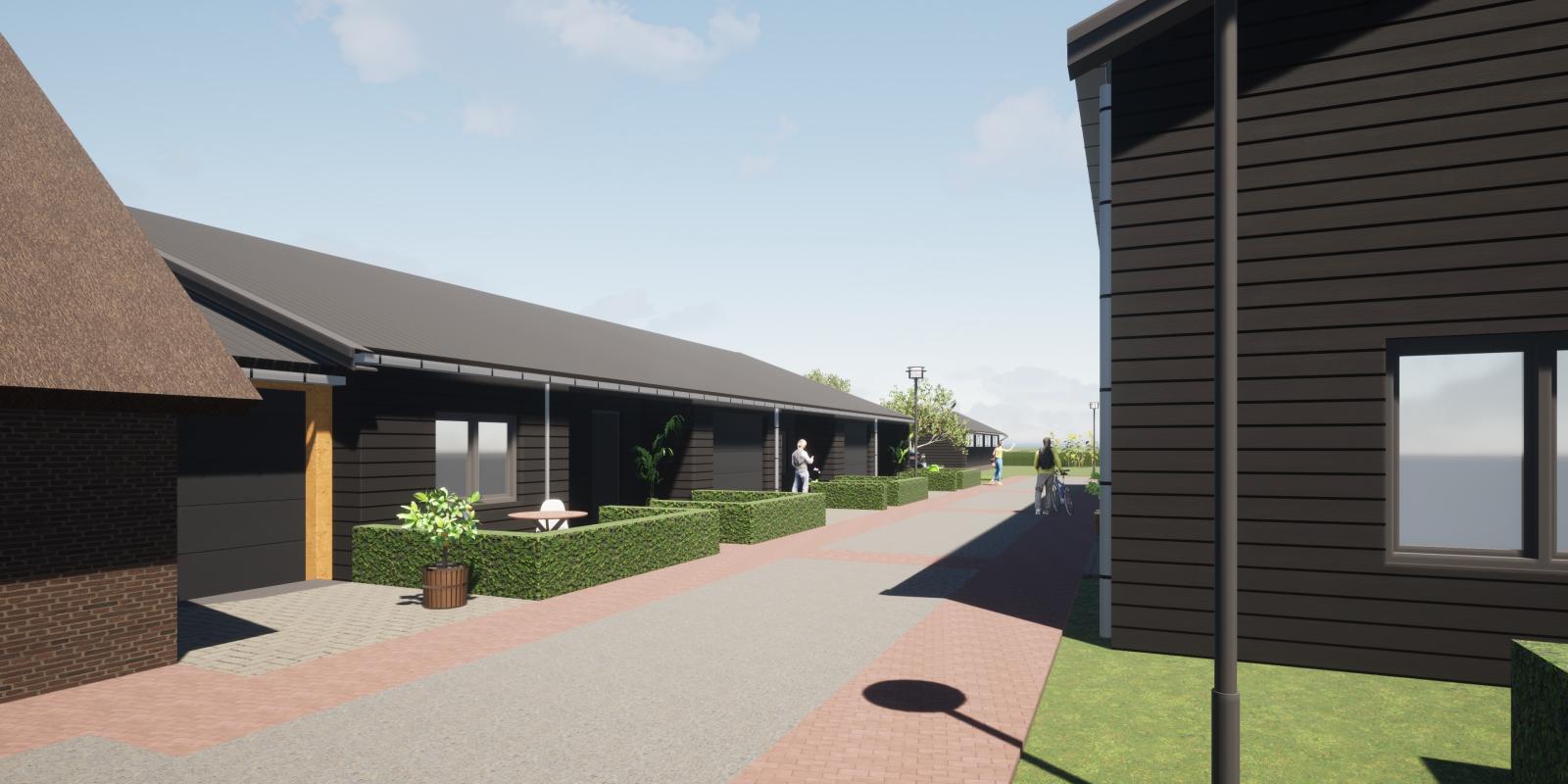 Als eerste worden de zes levensloopbestendige woningen in de voormalige paarden- en koeienstal gerealiseerd. De benodigde vergunningen zijn inmiddels verstrekt. De bouw van deze woningen wordt uitgevoerd door bouwbedrijf Versluis – Spelt uit Polsbroek. Aan de hand van de technisch uitgewerkte stukken heeft de prijsvorming en verdere afstemming met de betrokken partijen plaatsgevonden.